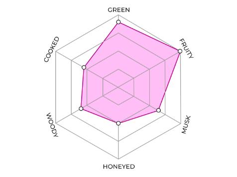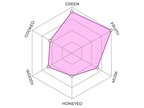 Green and fruity notes open the experience with a fresh, expressive attack. A gradual sweetness, with musky and honeyed accents, settles into a rounded aromatic core. A woody, cooked finish structures the tasting and lingers on the palate.
